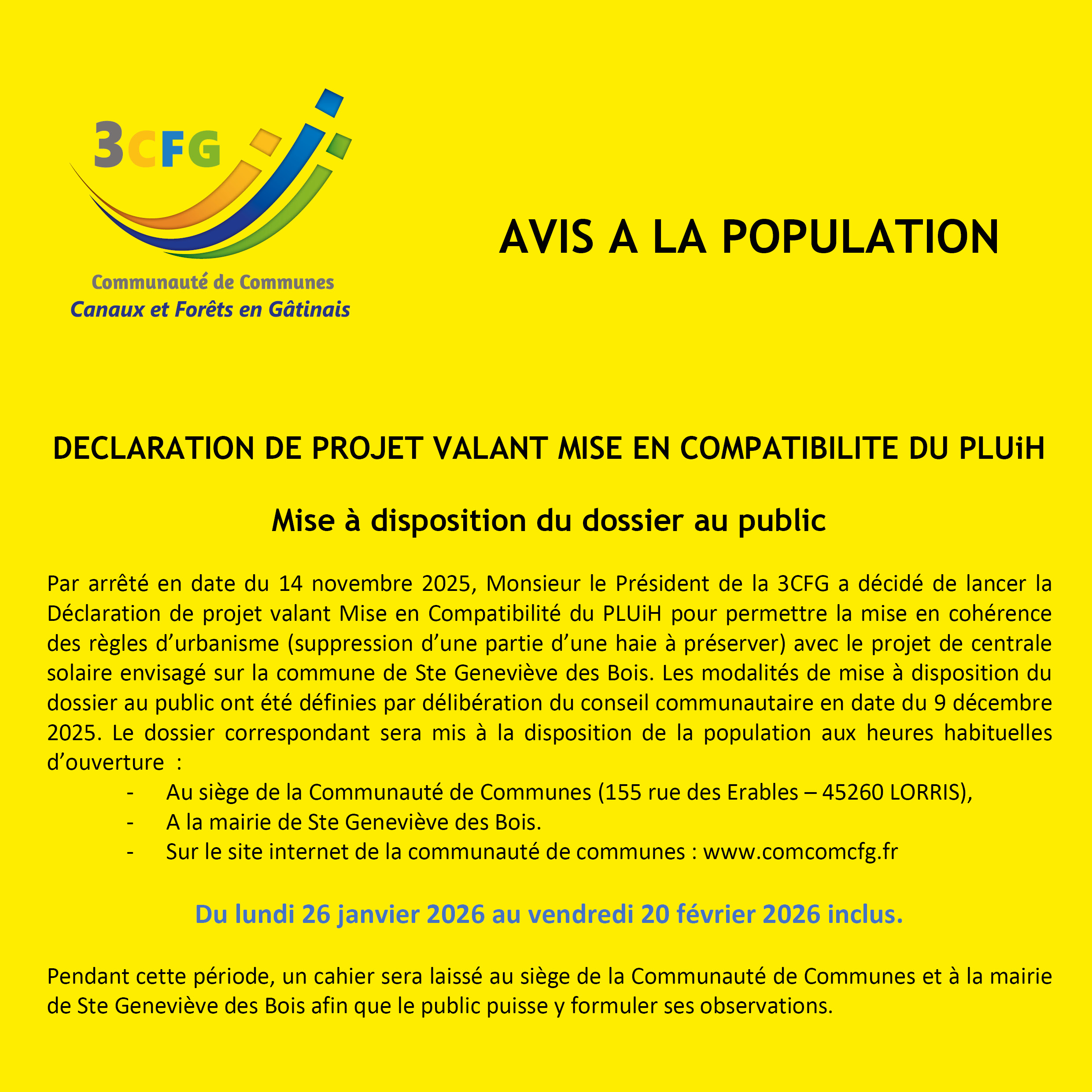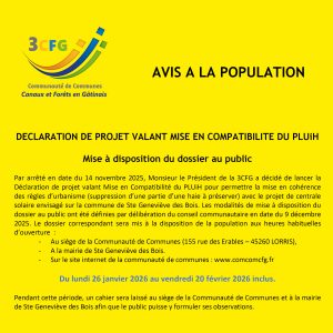 Avis de mise à disposition du dossier de Mise en Compatibilité du PLUiH pour le projet de centrale solaire à Ste Geneviève des Bois